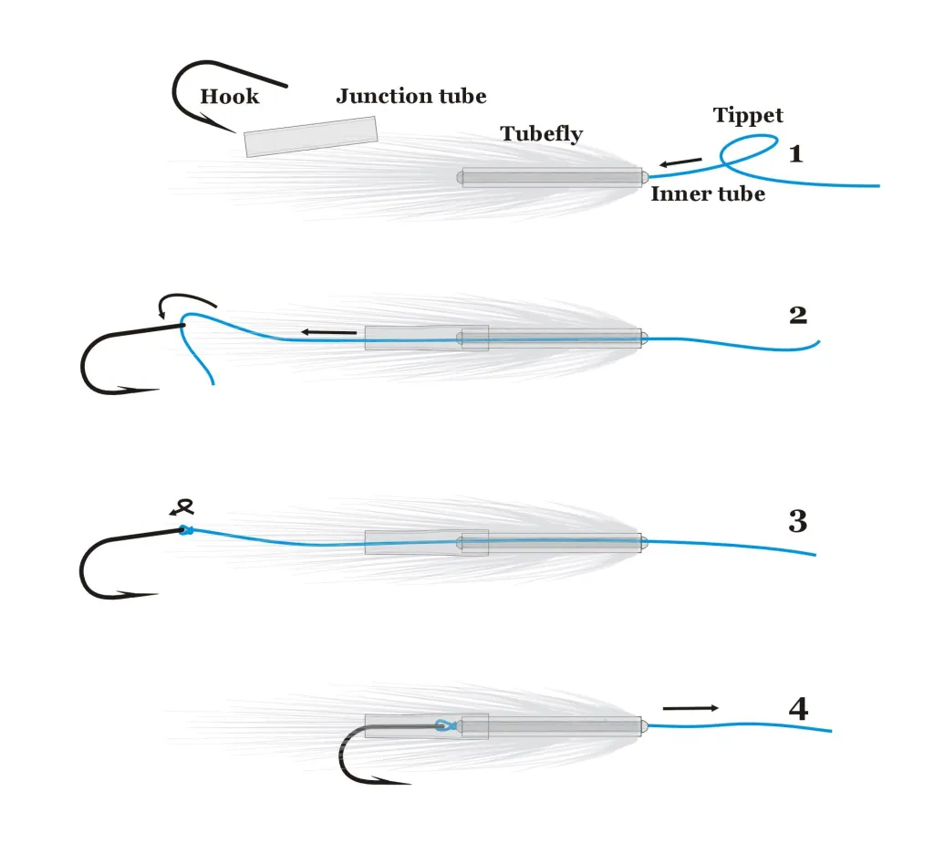 1) Tippet goes into the tube front